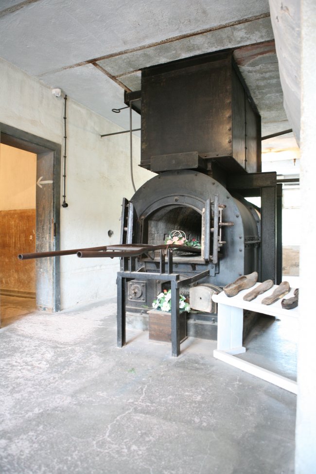Photos of the the single muffle portable Kori oven in Natzweiler. See the crude body delivery device as compared to the more sophisticated Topf device used in Auschwitz/ Birkenau and Buchenwald. The oven has been adapted from its original form where it was fuelled by oil to being fuelled by coal or wood.