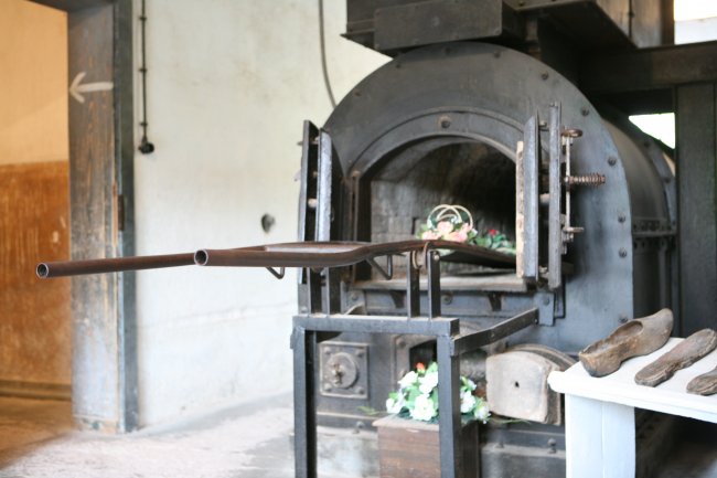 Photos of the the single muffle portable Kori oven in Natzweiler. See the crude body delivery device as compared to the more sophisticated Topf device used in Auschwitz/ Birkenau and Buchenwald. The oven has been adapted from its original form where it was fuelled by oil to being fuelled by coal or wood.
